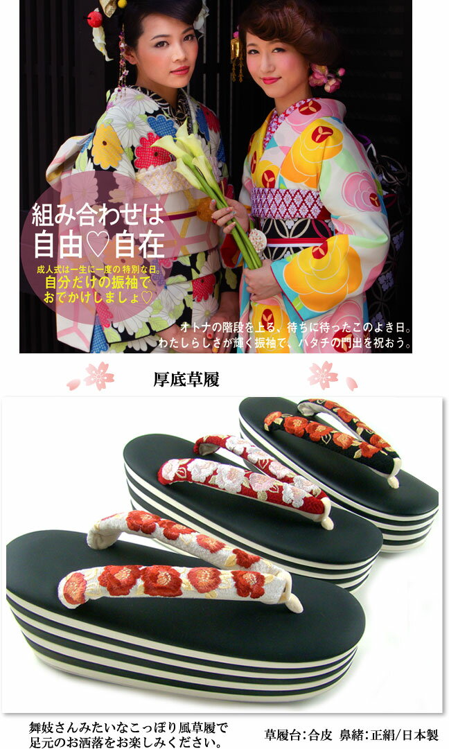 【コンビニ受取対応商品】【楽天BOX受取対象商品】 イベント&特集calla 厚底 草履 黒 フリーサイズ商品説明 舞妓さんのこっぽり風厚底草履でお振袖がより華やかに!マットブラック×ホワイトのボーダー柄がお洒落な草履台に、椿の刺繍が施された鼻緒で高級感漂います。