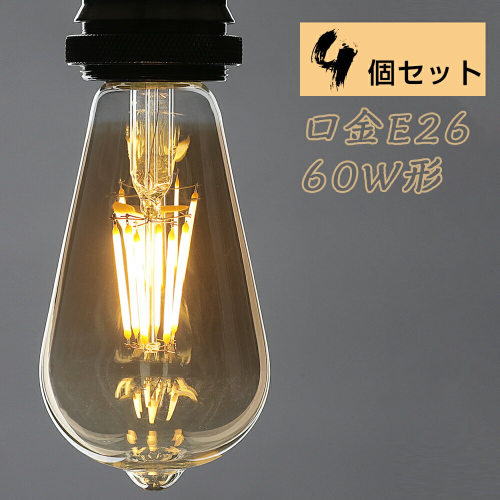 【4個セット】LEDエジソン電球 LED電球 E26 60W形相当 フィラメント電球 エジソンランプ クリア電球 ST64 広配光タイプ クラシック レトロ電球 アンバーガラス アンティーク照明